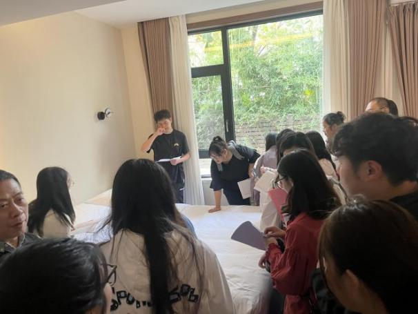 刘皑作为民宿标准化推动者,现场解析 “标准化≠千店一面” 运营逻辑,分享以民宿带动景中村生态修复、打造 “沉浸式楚文化课堂” 的理念。课前学员已研读民宿国标与甲级民宿评分标准,课上化身 “评审员”,对照环境、设施、服务等细则实地核验,围绕生态可持续、空间美学量化评分,共探 “民宿 + 文旅” 标准优化路径。